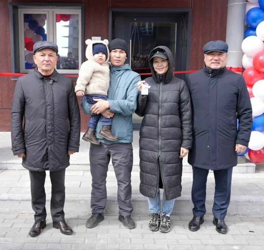 Это пять современных девятиэтажных домов, в которых будут жить 252 семьи. Глава Тувы с большой радостью вручил ключи от квартиры Матери-героине России Айнааш Владимировне Ондар.